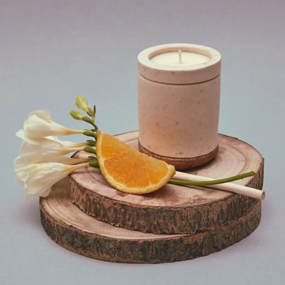 Notas de naranja dulce, bergamota y sándalo Vela de cera de soja natural con una estimulante mezcla de naranja dulce, bergamota y sándalo. Sus vibrantes notas cítricas y suaves notas amad...